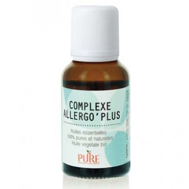 Le Complexe Allergo’ Plus de PURE associe 5 huiles essentielles pures et naturelles (camomille, estragon, niaouli, eucalyptus radiata et lavandin) à l’huile végétale bio de sésame.