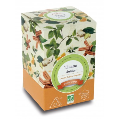 La Tisane Antiox’ est idéale pour prendre soin de son organisme au quotidien. Il est important de protéger nos cellules contre le vieillissement, la pollution, le stress… Cette tisane rassemble les vertus de la cannelle, du rooibos et du gingembre. Fabriquée en Maine et Loire.