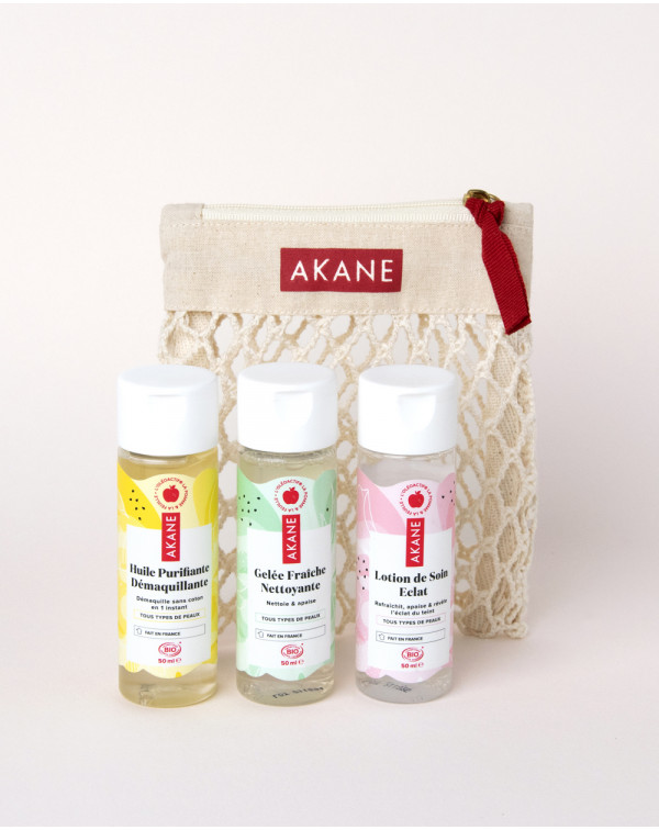 La Trousse triple démaquillage Akane rassemble vos essentiels pour une routine de nettoyage en 3 étapes inspirée des rituels de beauté asiatique.